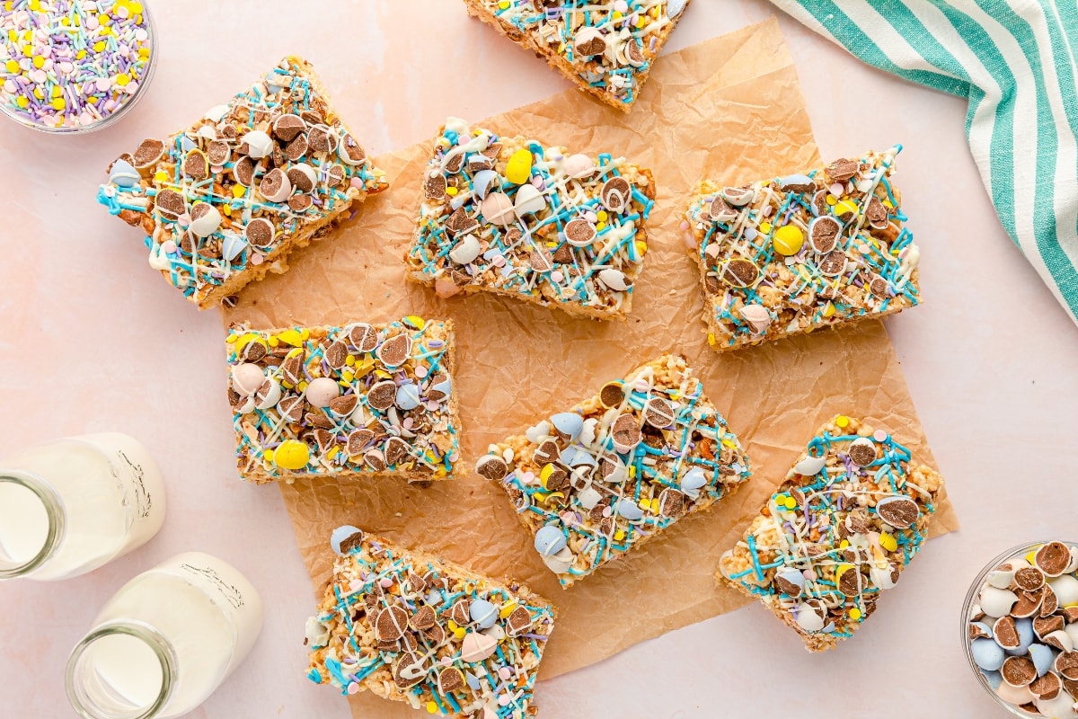 Classic rice krispie treats get a festive makeover with colorful decorations and shapes. Soft, chewy, and quick to prepare, they’re always a crowd favorite. Great for making with kids. Get the Recipe: Easter Rice Krispie Treats (Quick and Easy Recipe)