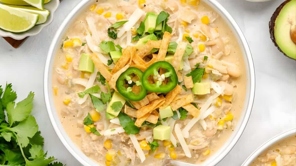 This chili feels rich and steady without being overwhelming. Beans, chicken, and a creamy base make it filling enough to stand alone. It’s a dependable bowl for nights when cold weather drags on.