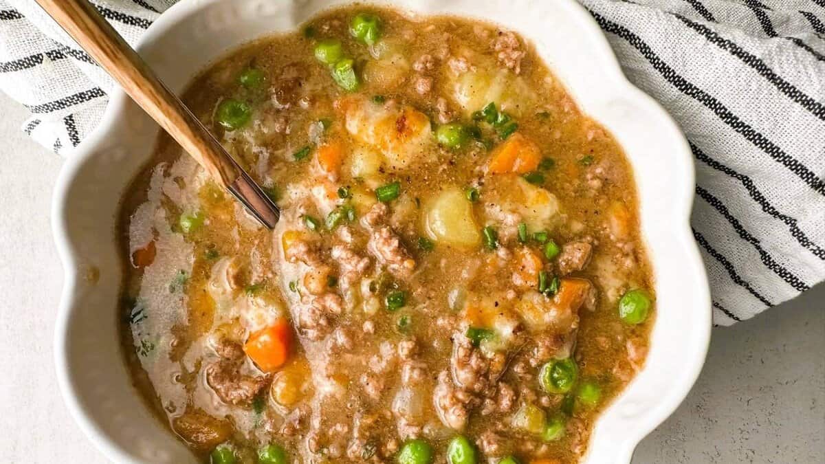 This soup takes the familiar comfort of shepherd’s pie and turns it into something easier to settle into. Meat, vegetables, and broth come together in one bowl that feels complete. It’s a good option when layered dishes feel like too much.