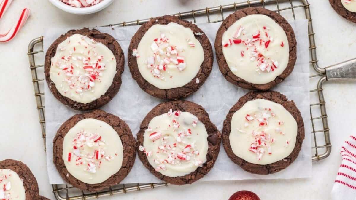 Chocolate and peppermint always draw a crowd, and these cookies deliver both without being overwhelming. The cookie base stays soft and rich, while the white chocolate and crushed candy canes add contrast on top. They’re especially popular because they feel seasonal right away and taste just as good once they’ve cooled.