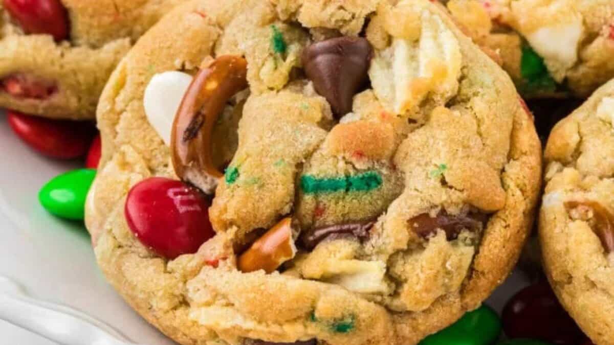 Every bite of these feels slightly different, which is exactly why they disappear so fast. Chocolate, pretzels, candy, and chips all show up without competing, so the cookie never feels too sweet or one note. They’re messy, generous, and exactly what people hope for when they scan a cookie swap table.