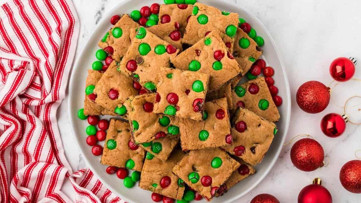 M&M Holiday Cookie Bars