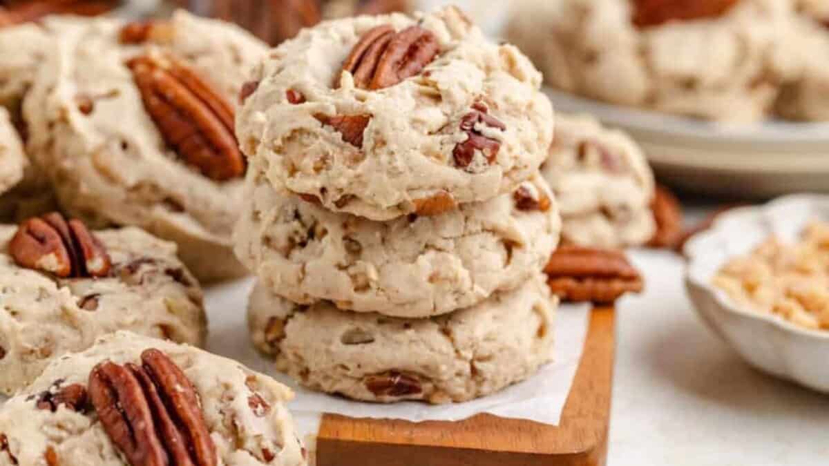 These cookies feel nostalgic in the best way, with pecans baked right into a soft dough that stays tender even after sitting out. The toffee bits add little pockets of sweetness that keep things interesting without overwhelming the cookie. They’re the kind people reach for when they want something familiar but slightly different from the usual chocolate options.