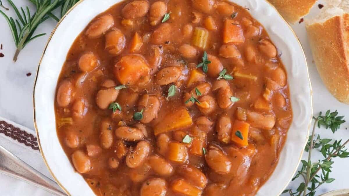 This bean stew cooks beans and vegetables in a red wine broth that reduces into something rich and filling. The vegetables soften fully and the beans hold their shape as they absorb the flavor. It belongs in this list because it makes a complete meal using only one pot and simple prep.