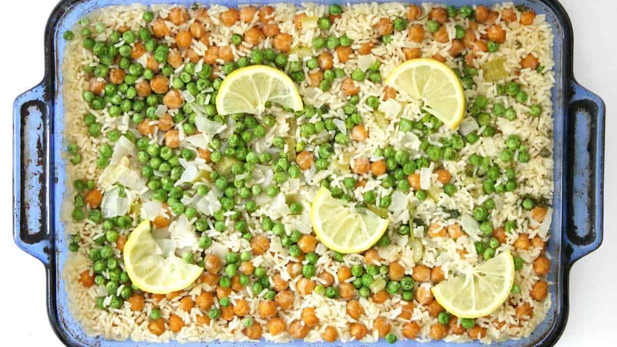 Lemon Chickpea and Rice Casserole