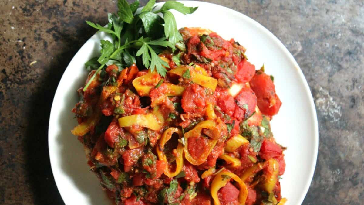 Chicken bakes in a tomato base while banana peppers soften and release their mild heat into the sauce. The juices collect into a light pan sauce that coats each piece and works well over rice or potatoes. It comes out bright, savory, and easy to serve straight from the dish.