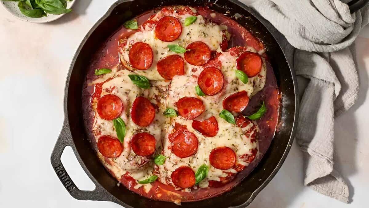 Chicken is baked in marinara sauce and topped with cheese and pepperoni for a dish that combines the ease of a casserole with the flavor of pizza. It is hearty, family-friendly, and requires only one baking dish, which keeps cleanup simple. This makes a reliable weeknight dinner when you want something familiar and fun without ordering takeout.