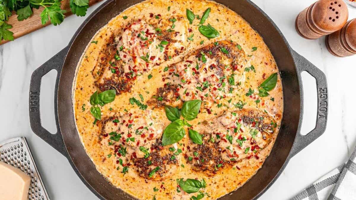Chicken breasts are seared until golden, then cooked in a creamy parmesan garlic sauce with sun-dried tomatoes and herbs. The dish takes about 30 minutes, making it a great option for weeknights while still being rich and comforting enough for a special dinner. It is flavorful, filling, and a one-pan recipe that fits the October theme perfectly.