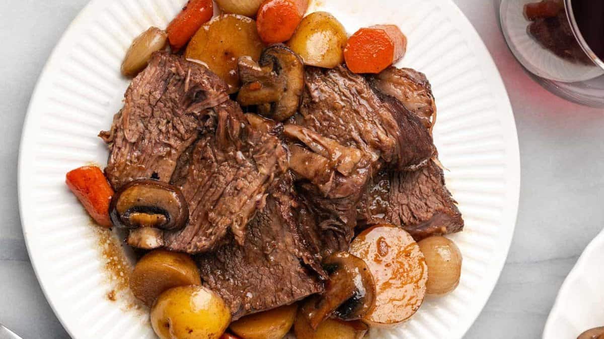 Beef simmers slowly with carrots, potatoes, and herbs in a Dutch oven until it becomes fork-tender. The rich gravy ties everything together, creating a classic comfort dish. It is perfect for weekends when you want the house to smell incredible while dinner practically cooks itself.