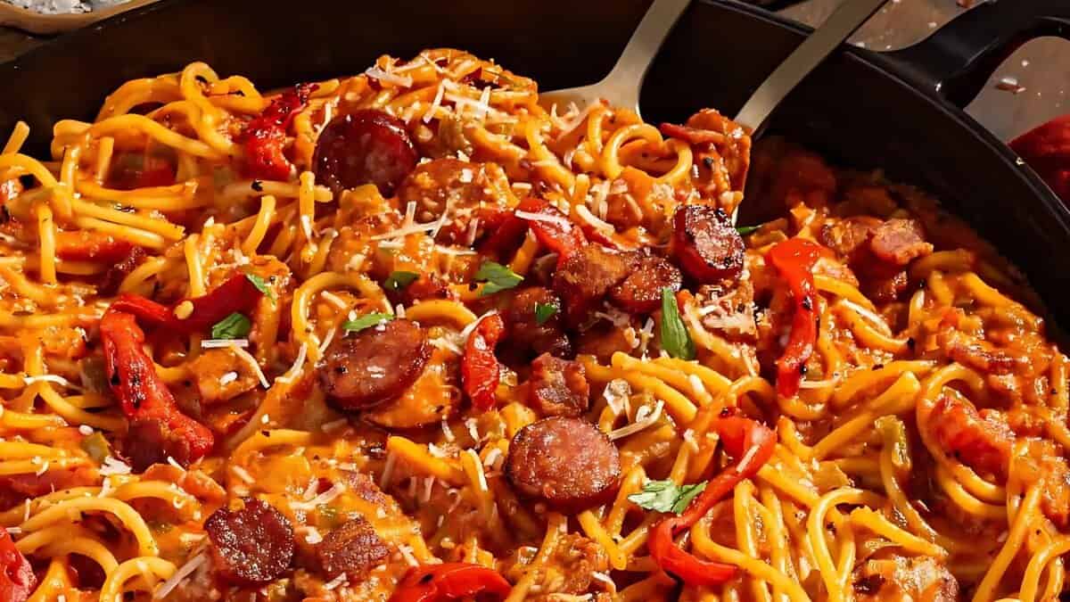 Get the Recipe: One Pot Cajun Sausage Spaghetti