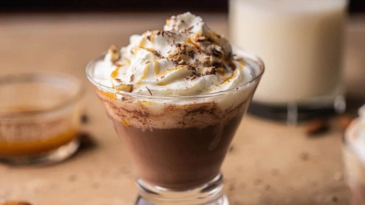 This hot chocolate stirs in amaretto along with whipped cream and caramel for a richer cup with almond notes. The liqueur pairs well with the chocolate and adds depth without making the drink too strong. It warms well on the stove and holds its creamy texture.