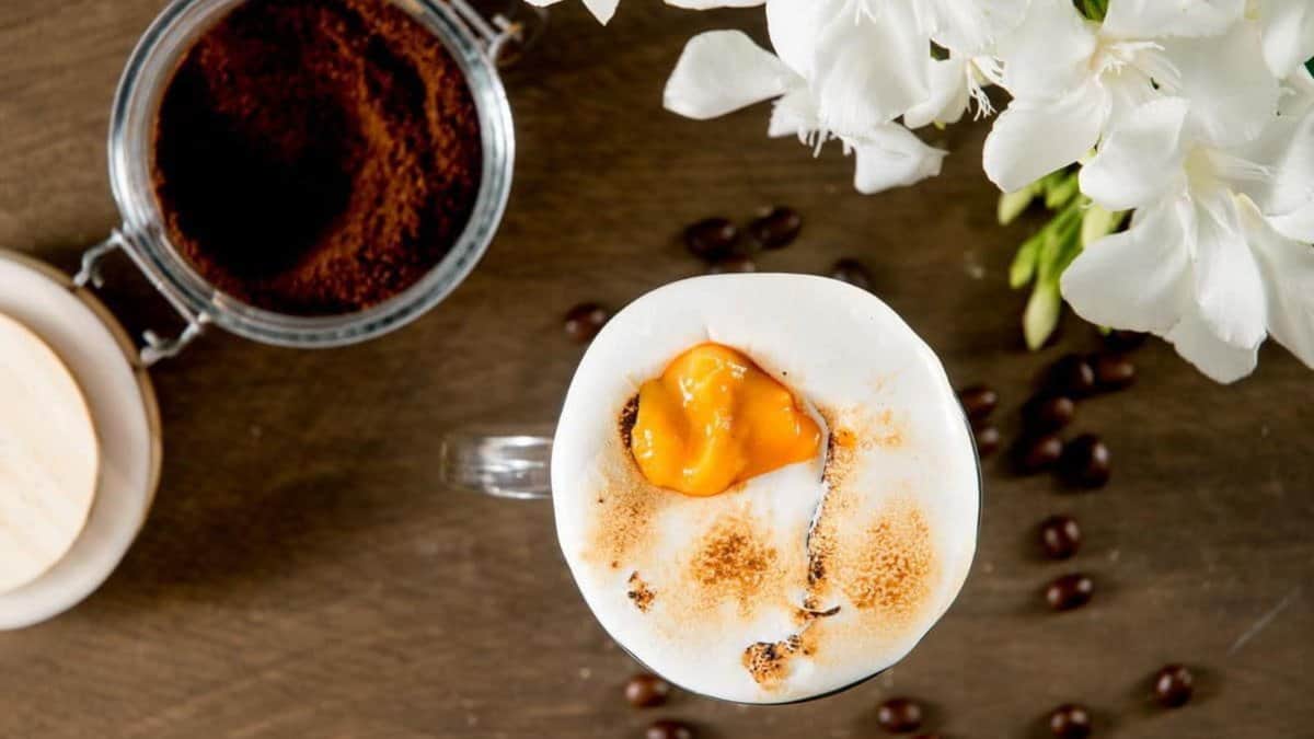This latte blends espresso, pumpkin, and spices, then finishes with marshmallow fluff that softens into the hot drink. The pumpkin adds body while the marshmallow gives it a mellow sweetness. It’s easy to prepare at home and brings a creamy texture that suits chilly mornings.