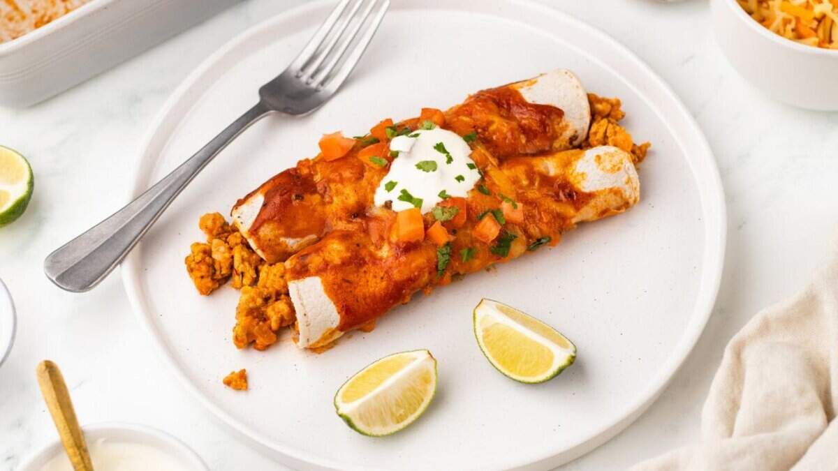 These enchiladas fill tortillas with turkey and cheese, then bake them in a lightly spiced sauce that brings everything together. They take only a few minutes to assemble and bake into a dinner that feels upgraded. The sauce keeps the turkey moist and brings something different to the table after days of holiday food. They reheat well, too.