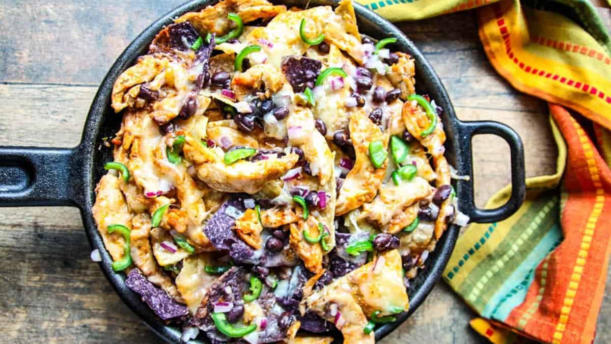 These nachos top chips with turkey, cheese, beans and vegetables for a fast meal that takes almost no prep. They go under the broiler just long enough to melt everything into a crisp, hearty dish. It’s a fun change from traditional leftover meals and perfect for casual eating the day after the holiday. You can top them with whatever you have on hand.