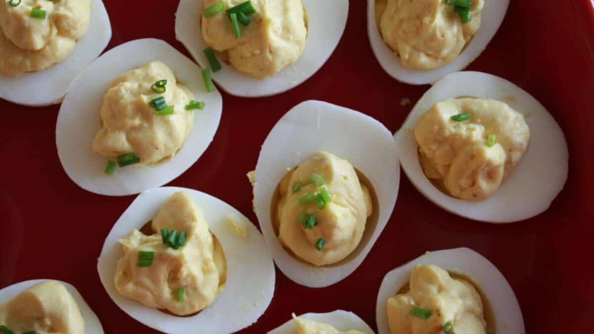 Deviled eggs always disappear fast at parties, and the pickle flavor gives them a sharp, tangy kick that stands out. They feel nostalgic but still interesting enough to keep people talking about them.