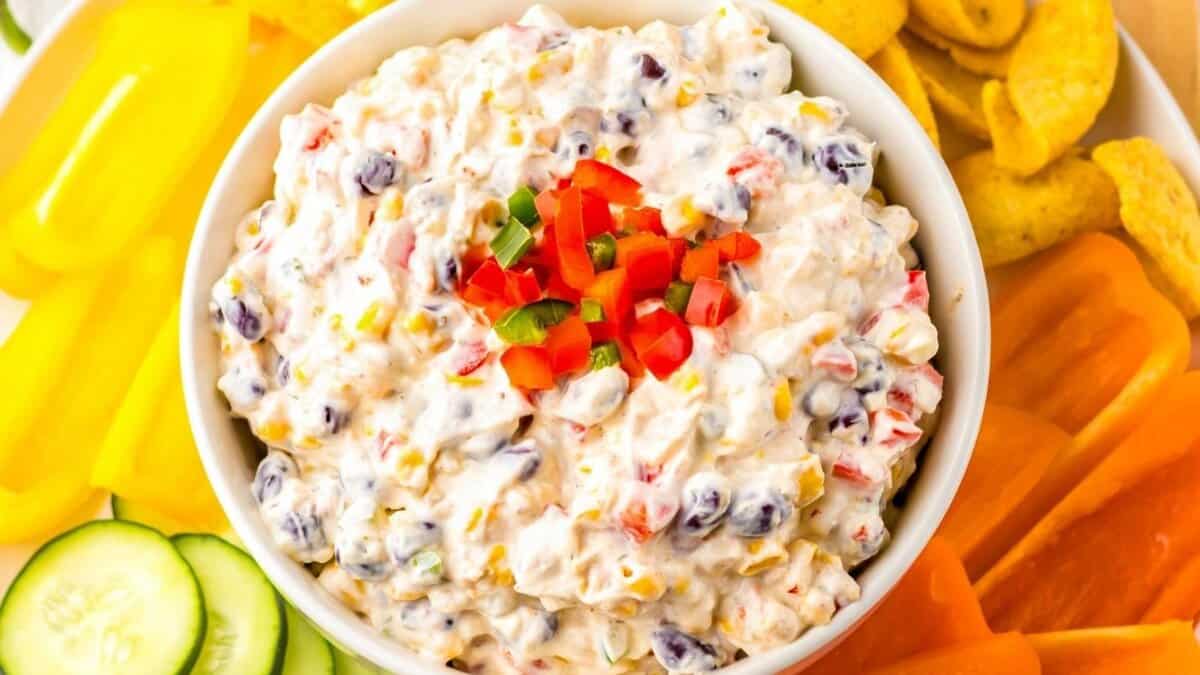 This dip has the kind of bold ranch flavor that people recognize right away, and the mix of corn, beans, and peppers gives it a hearty feel that works well on a snack table. It tastes good scooped with chips and holds its own next to heavier appetizers, which makes it a strong addition to any game-day lineup.