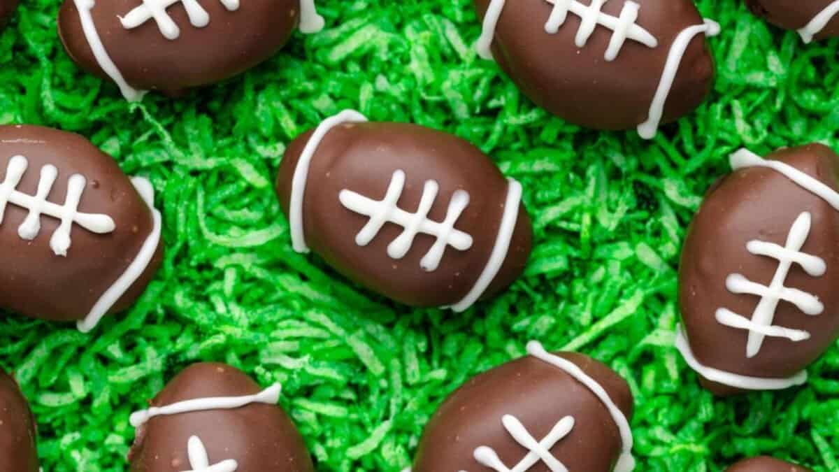 These little bites hit the table and vanish quickly because the chocolate coating and creamy center feel like a treat without being heavy. The football shape makes them feel festive, and their small size makes it easy for people to grab one, then another without thinking twice.