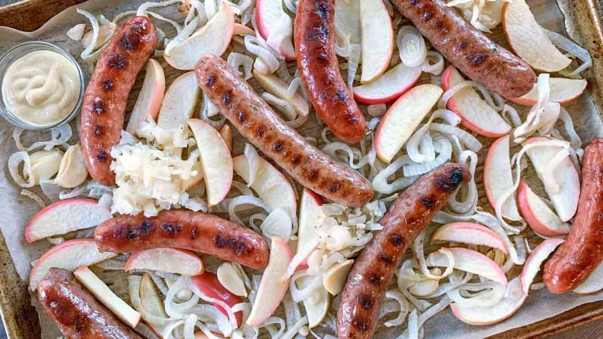 The subtle sweetness from apple pairs naturally with the savory seasoning in the sausage, creating contrast without tipping into dessert territory. Roasted onions deepen the flavor, giving the dish a rounded, fall-leaning profile.