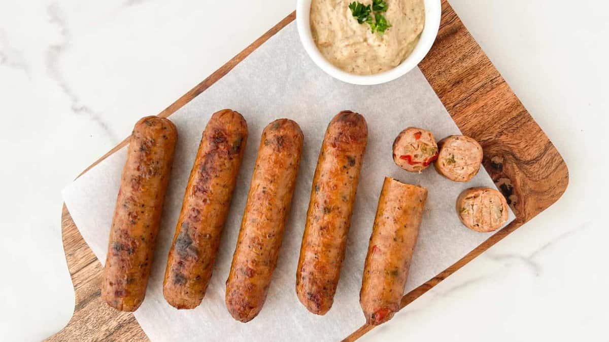 The casing develops a lightly crisp exterior while the inside stays juicy and well seasoned. Depending on the flavor you choose, the sausage can lean herby, garlicky, or slightly spicy, making it easy to build a meal around without adding much else. It’s straightforward, filling, and deeply savory without feeling greasy.