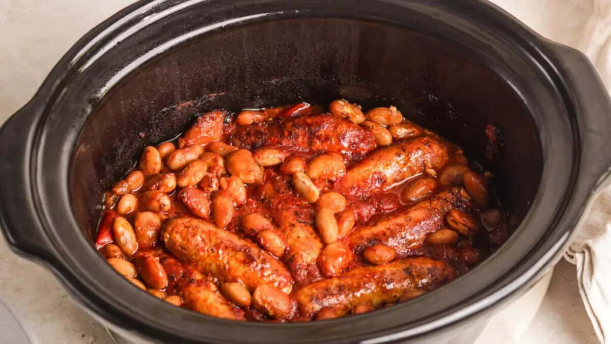 Chicken sausage infuses the tomato base with steady, savory flavor that builds as the dish sits. Beans absorb that seasoning, turning soft and flavorful rather than bland. The result feels hearty and cohesive, like something meant to be eaten in a bowl with a spoon rather than picked at.