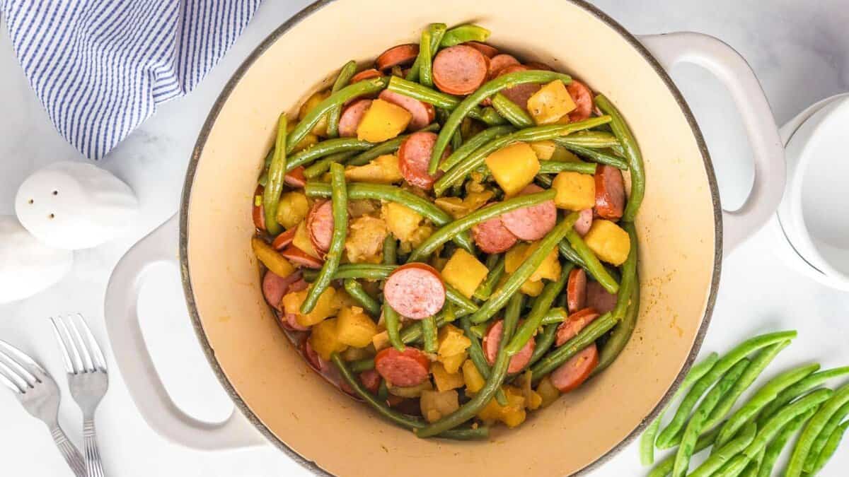 One Pot Smoked Sausage, Green Beans and Potatoes