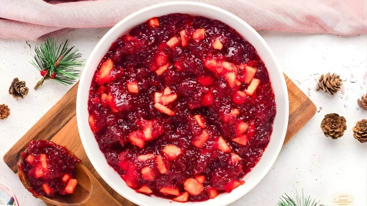 This cranberry compote simmers on the stovetop with oranges, ginger and rosemary until it thickens and turns glossy. It brings a bold pop of fruit to the table and works well for anyone who wants true holiday flavor without baking a full sauce in the oven.