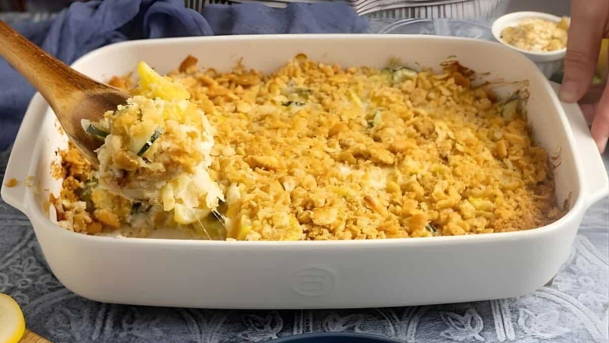 This casserole combines cooked squash with cheese and crackers before baking into a soft interior with a crisp topping. The prep stays straightforward and the casserole feeds several people easily. It reheats well and keeps its texture.